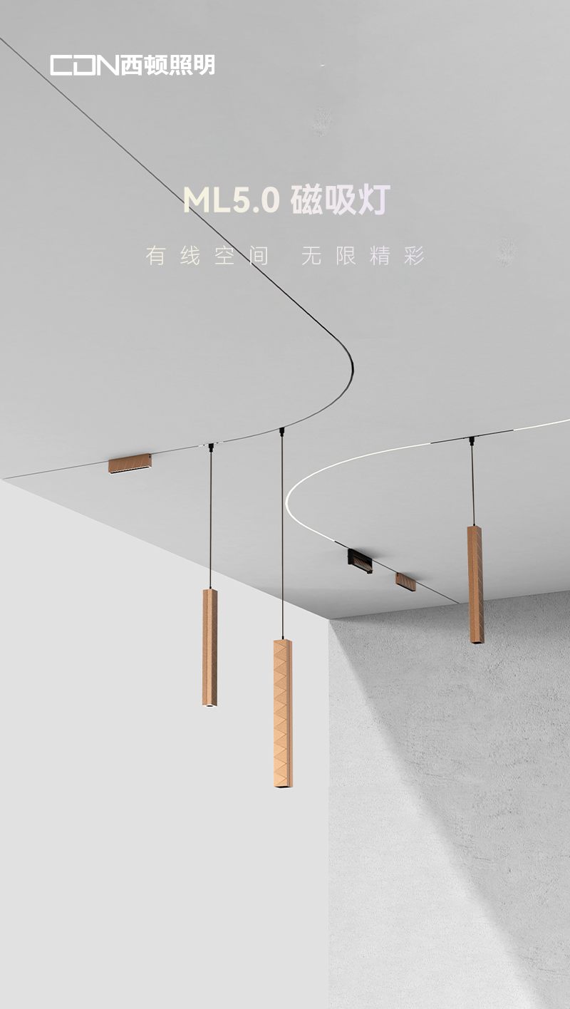 ML5.0磁吸灯突破3.9mm超薄尺寸,搭载3重专利硬核技术和1+2+N磁吸智能照明解决方案,一站式解决多空间、多场景、多功能照明需求,引领简约超窄线形空间美学。